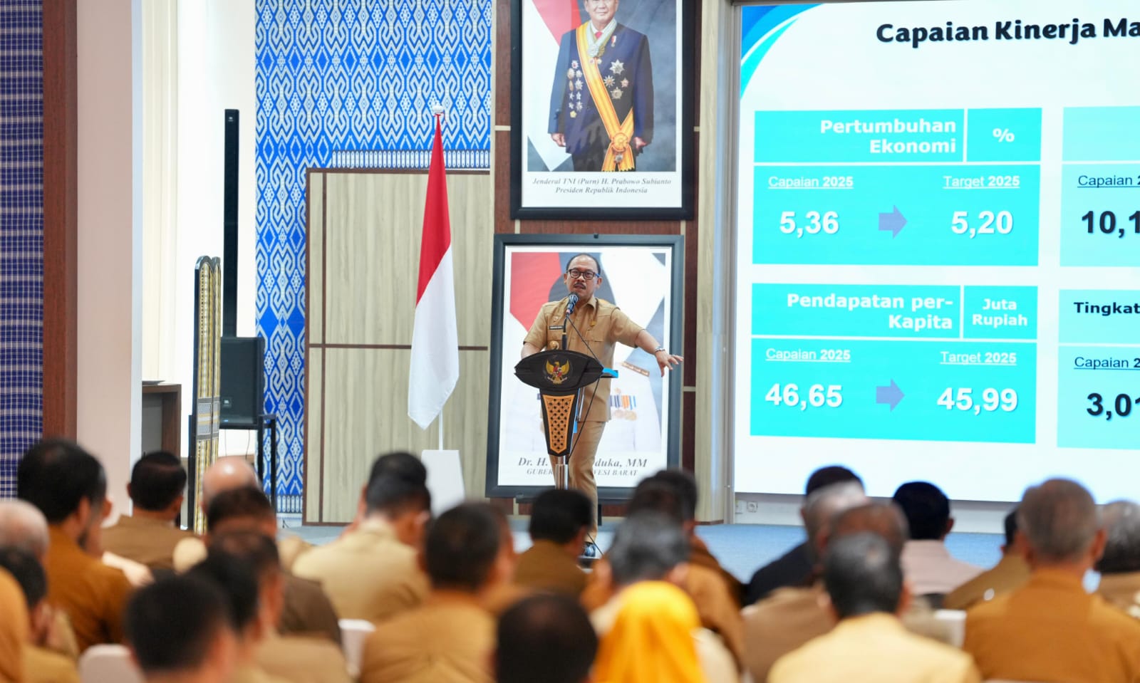 “RKPD hari ini untuk 2027 tentu kita melihat arah pembangunan sejak 2025 sudah mulai membaik. Pertumbuhan ekonomi kita sudah di atas nasional, ini kebanggaan. Pertumbuhan itu juga menghasilkan penurunan angka kemiskinan,” ujar Suhardi Duka.