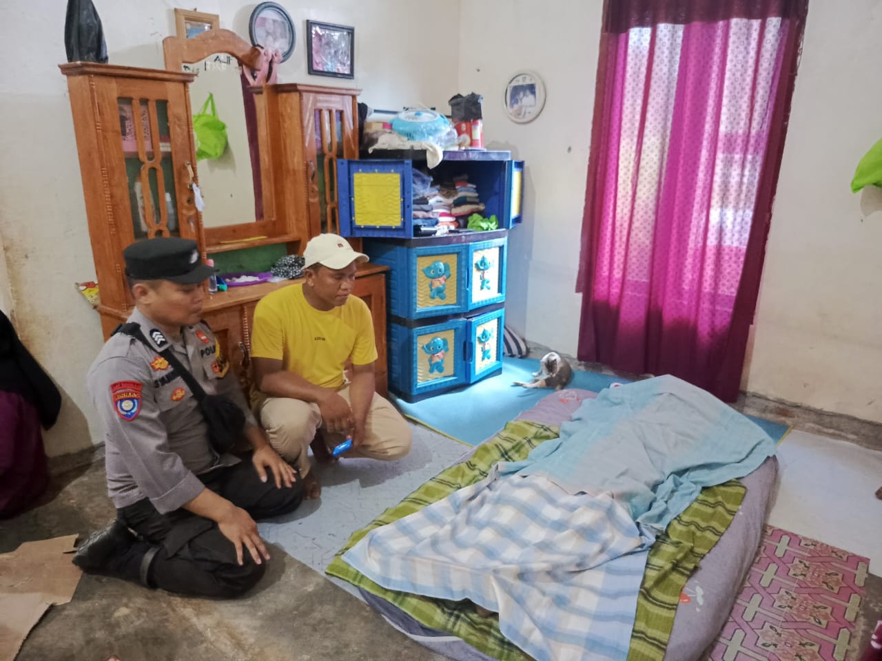 Personel Polres Polman bersama anggota Polsek Binuang mendatangi lokasi penemuan seorang perempuan yang ditemukan tewas di dalam kamar di Desa Kuajang.